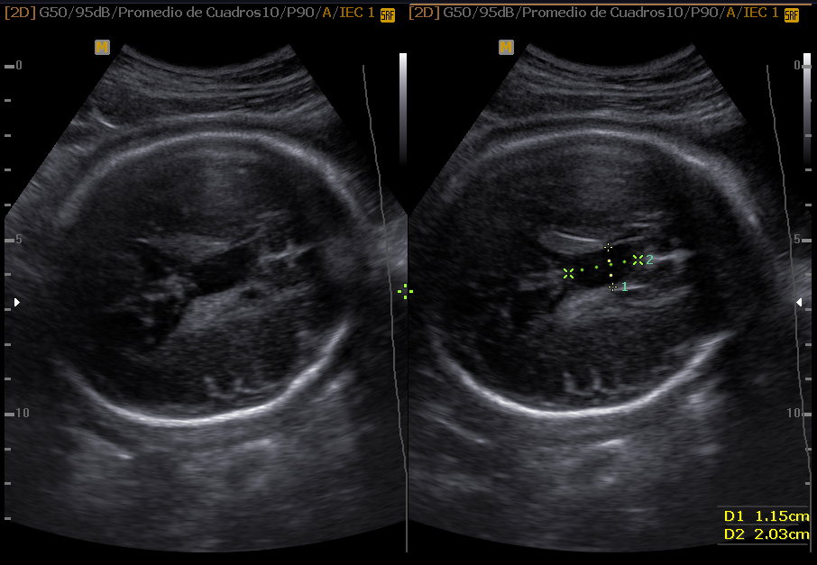 Las estructuras intracraneales después de la semana 18-20 del embarazo son muy características y permanecen visualmente invariables hasta el final del embarazo, solo modificando sus tamaños a medida que el feto crece. Esto es de gran ayuda ya que permite determinar la aparición de cambios que podrían sugerir desviación de la normalidad y aparición de una malformación congénita o lesión adquirida por eventos externos especialmente relacionados a infecciones y accidentes vasculares fetales.
