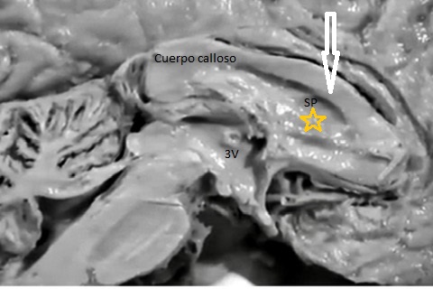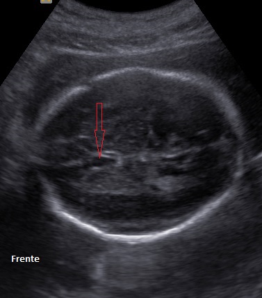 Cuerpo calloso: es una estructura compuesta por haces nerviosos cuya función es la de conectar e integrar regiones corticales homólogas entre ambos hemisferios cerebrales. Su ausencia total puede conducir a problemas cognitivos y del desorrollo psicomotriz o pasar totalmente desapercibida. Su ausencia parcial, paradójicamente, se asocia con peor pronóstico. Como estructura ecográfica, es una de las más bellas que hay en el cerebro pero, para obtenerla se requiere pericia y muy buena resolución ecográfica. Sus alteraciones congénitas son diagnóstico de problemas primarios del desarrollo cerebral y se manifiestan con cambios indirectos en otras secciones cerebrales, especialmente ventriculomegalia.
